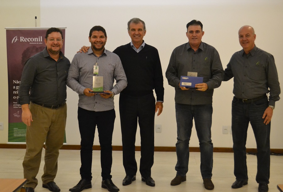 A Albaugh anunciou esta semana, em sua unidade industrial de Resende (RJ), os nomes dos vencedores do concurso realizado na etapa de desenvolvimento do novo fungicida multissÃtio Reconil®, para soja. O produto chega ao mercado já na safra de verão 2018-2019 e foi alvo de estudos em profundidade, realizados em lavouras experimentais montadas na fronteira agrícola da oleaginosa. Organizados em duplas, os participantes do concurso desenvolveram estratégias para controle eficaz de doenças da soja e manejo de resistência de fungicidas sistêmicos a fungos presentes nas lavouras.