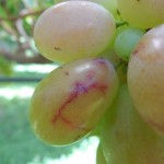 Foto 02 B – Injúrias (puncturas e galerias) causadas por adultos e larvas da mosca-das-frutas sul-americana Anastrephafraterculus em bagas de