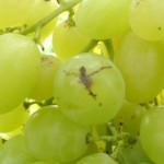 Foto 02 – Injúrias (puncturas e galerias) causadas por adultos e larvas da mosca-das-frutas sul-americana Anastrephafraterculus em bagas de vi